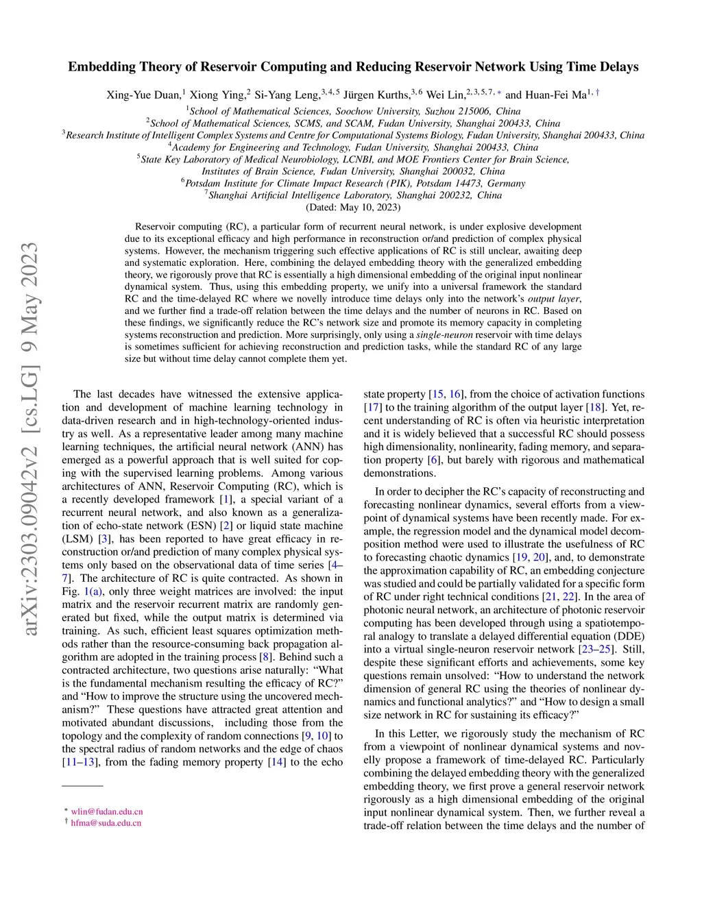 Reservoir computing (RC), a particular form of recurrent neural network, is under explosive development due to its exceptional efficacy and high performance in reconstruction or/and prediction of complex physical systems. However, the mechanism triggering such effective applications of RC is still unclear, awaiting deep and systematic exploration. Here, combining the delayed embedding theory with the generalized embedding theory, we rigorously prove that RC is essentially a high dimensional embedding of the original input nonlinear dynamical system. Thus, using this embedding property, we unify into a universal framework the standard RC and the time-delayed RC where we novelly introduce time delays only into the network's output layer, and we further find a trade-off relation between the time delays and the number of neurons in RC. Based on this finding, we significantly reduce the network size of RC for reconstructing and predicting some representative physical systems, and, more surprisingly, only using a single neuron reservoir with time delays is sometimes sufficient for achieving those tasks.
