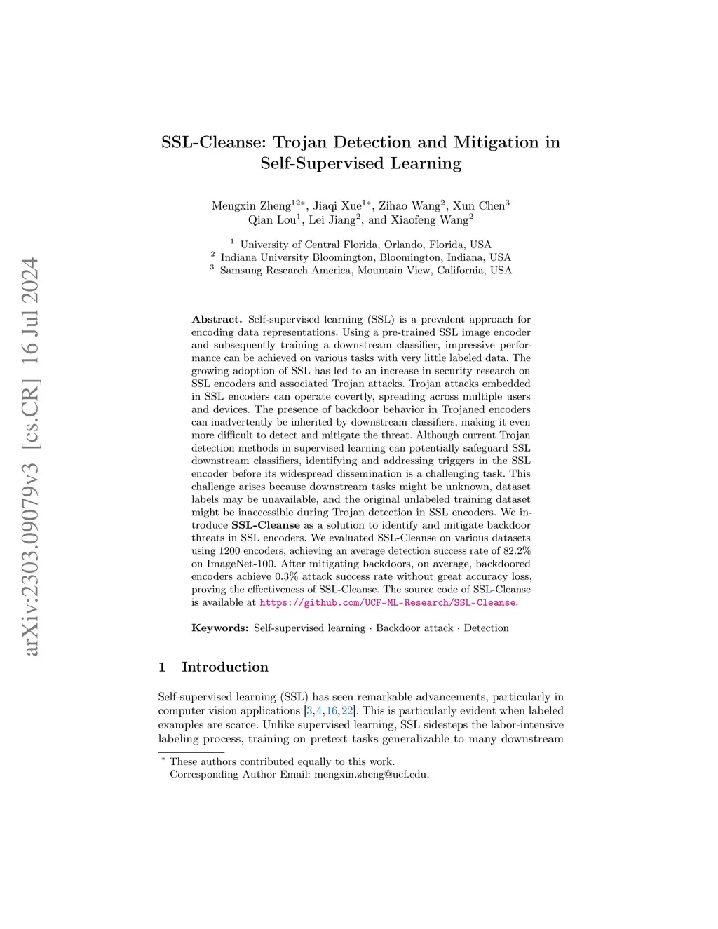 SSL-Cleanse: Trojan Detection and Mitigation in Self-Supervised Learning