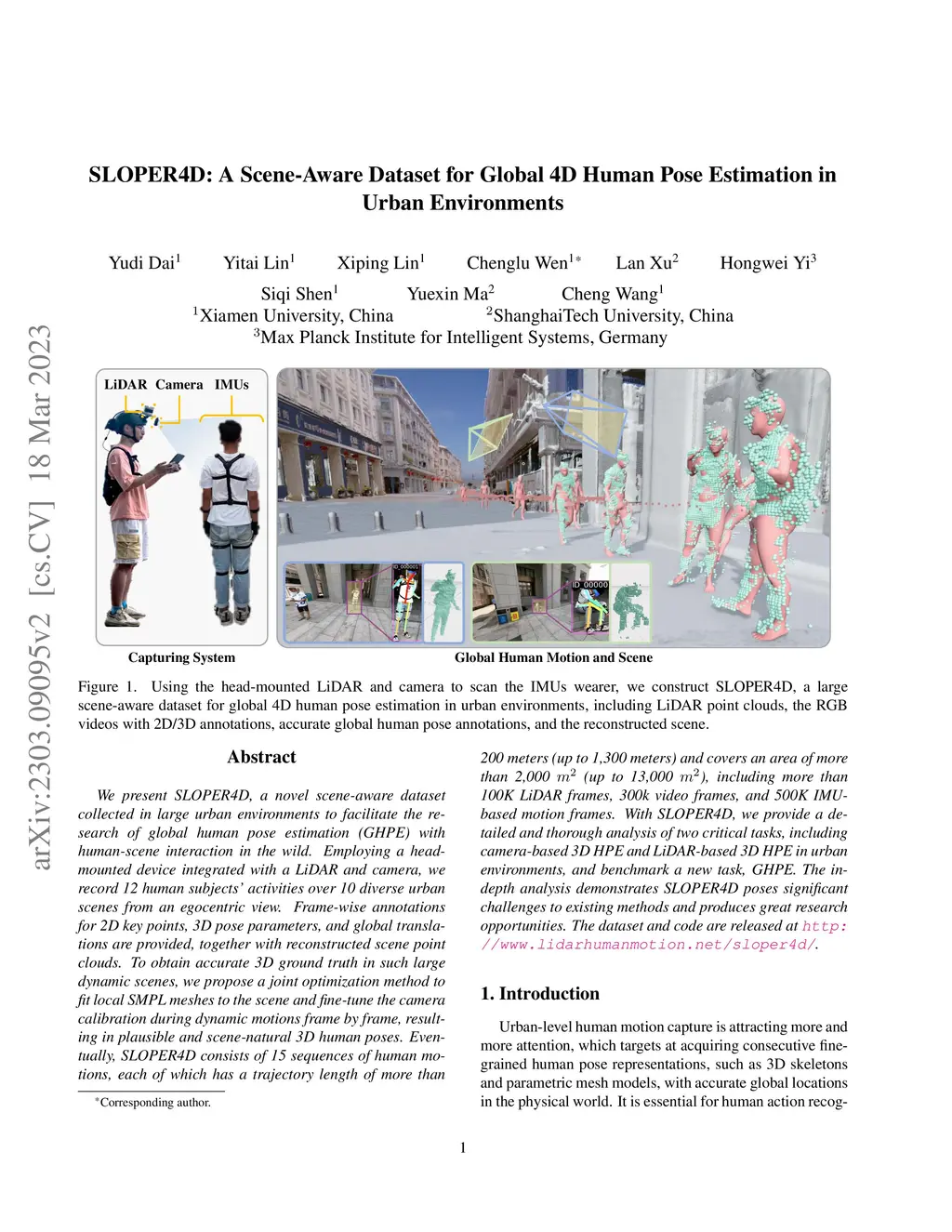 SLOPER4D: A Scene-Aware Dataset for Global 4D Human Pose Estimation in Urban Environments