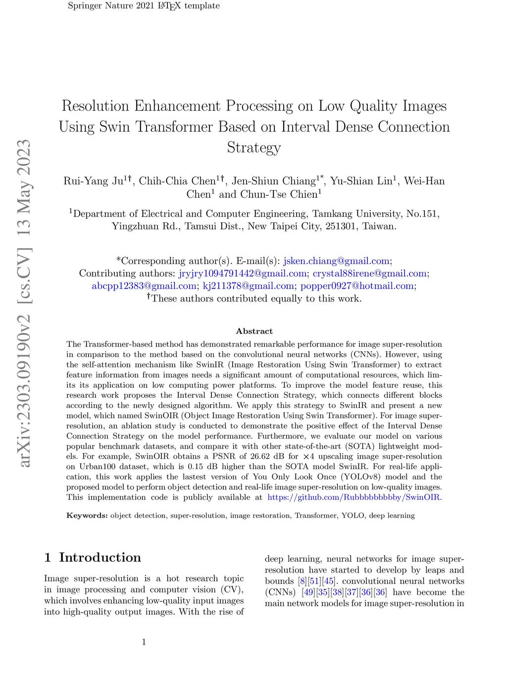 Resolution Enhancement Processing on Low Quality Images Using Swin