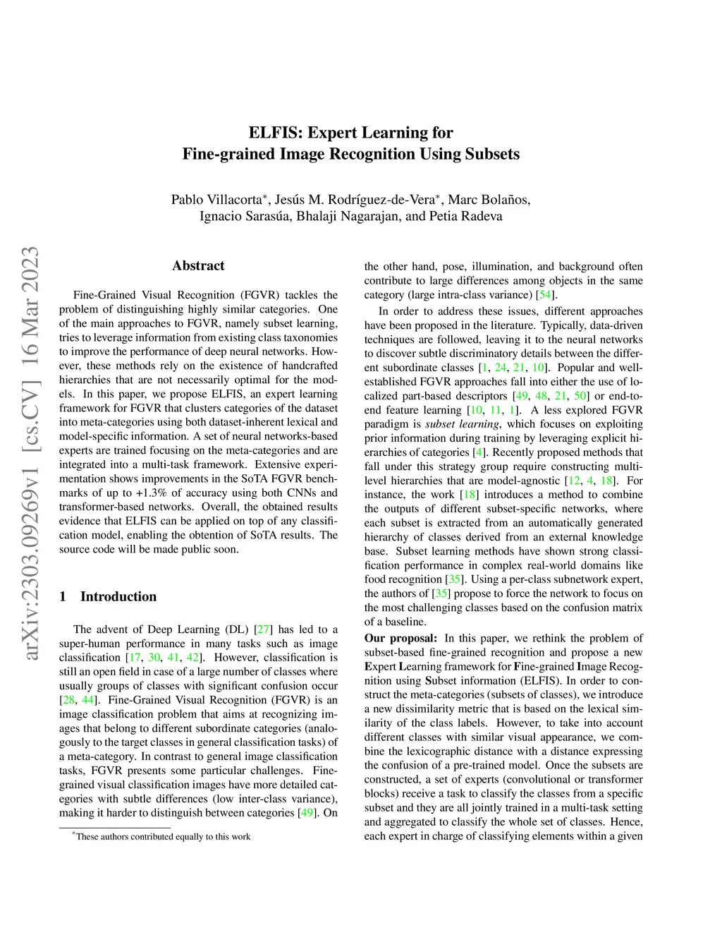 ELFIS: Expert Learning for Fine-grained Image Recognition Using Subsets