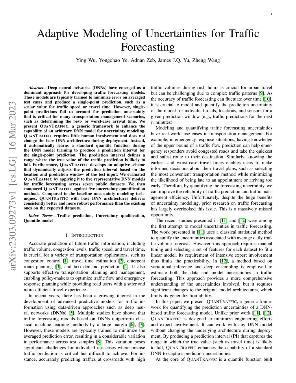Adaptive Modeling of Uncertainties for Traffic Forecasting