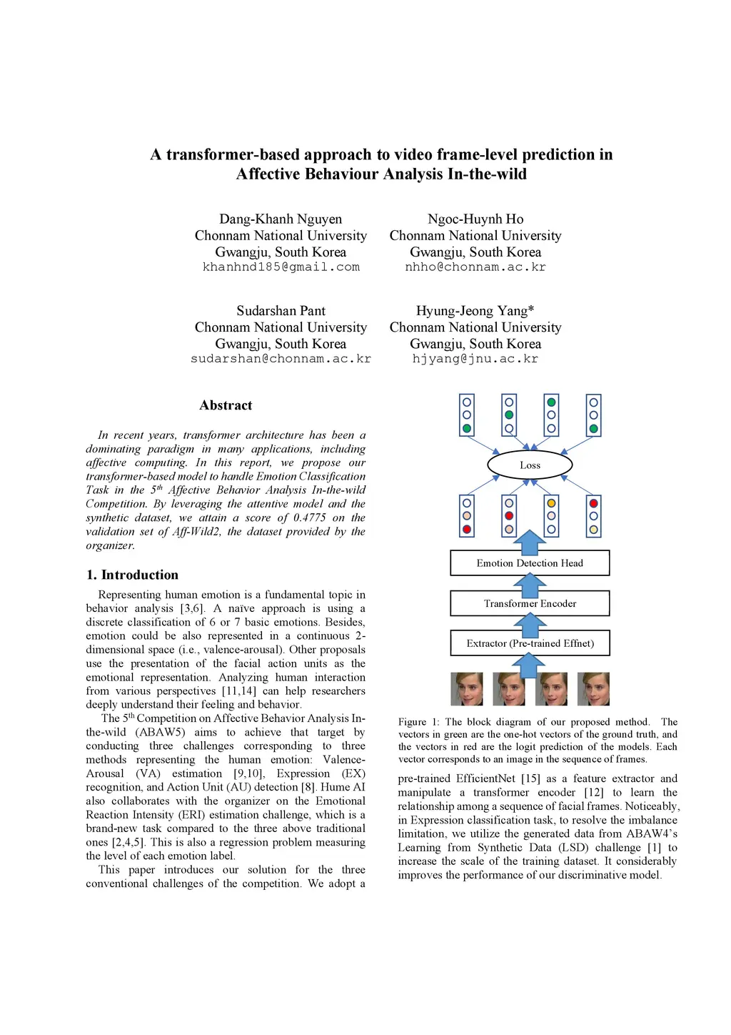 In recent years, transformer architecture has been a dominating paradigm in many applications, including affective computing. In this report, we propose our transformer-based model to handle Emotion Classification Task in the 5th Affective Behavior Analysis In-the-wild Competition. By leveraging the attentive model and the synthetic dataset, we attain a score of 0.4775 on the validation set of Aff-Wild2, the dataset provided by the organizer.