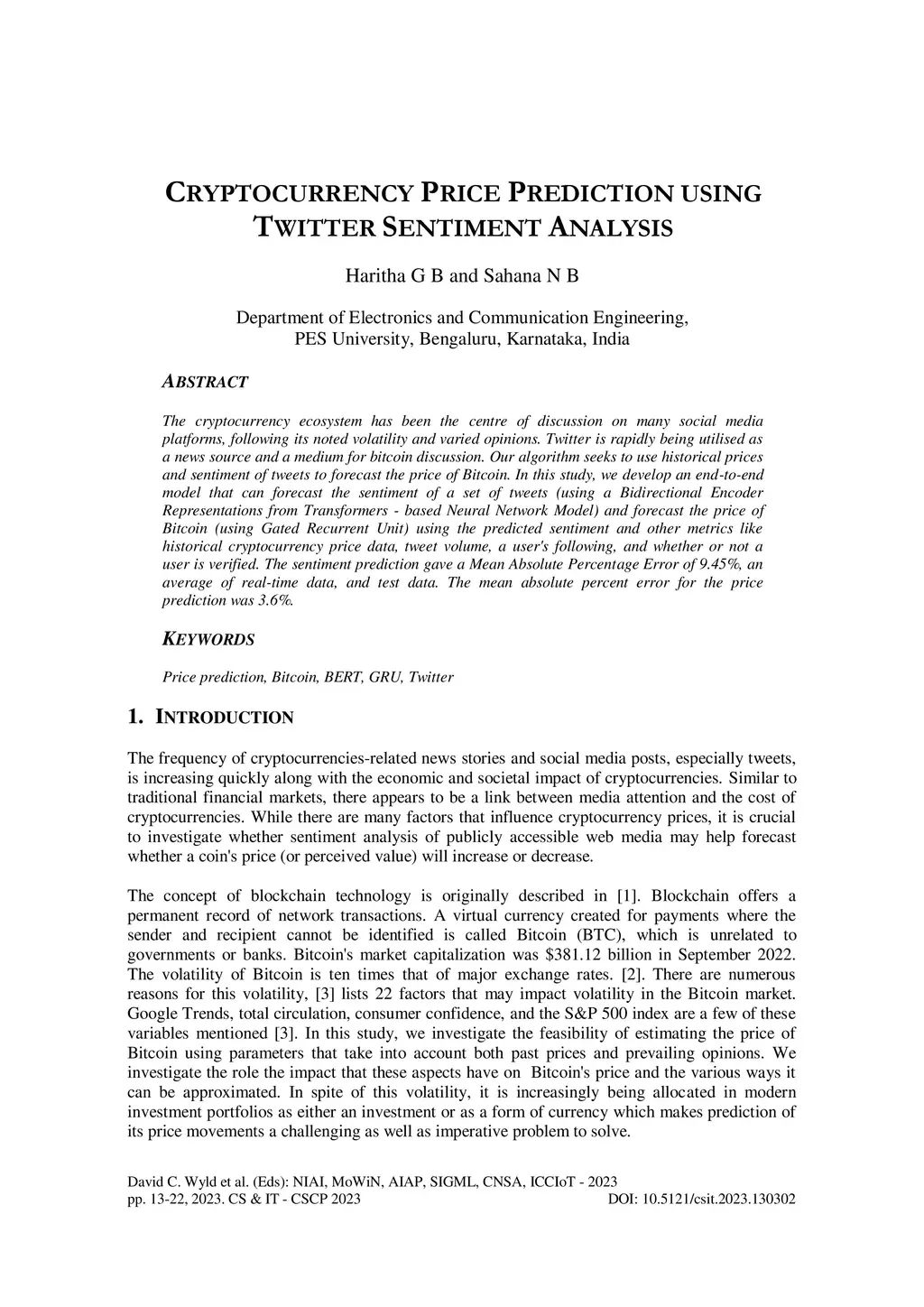 Cryptocurrency Price Prediction using Twitter Sentiment Analysis