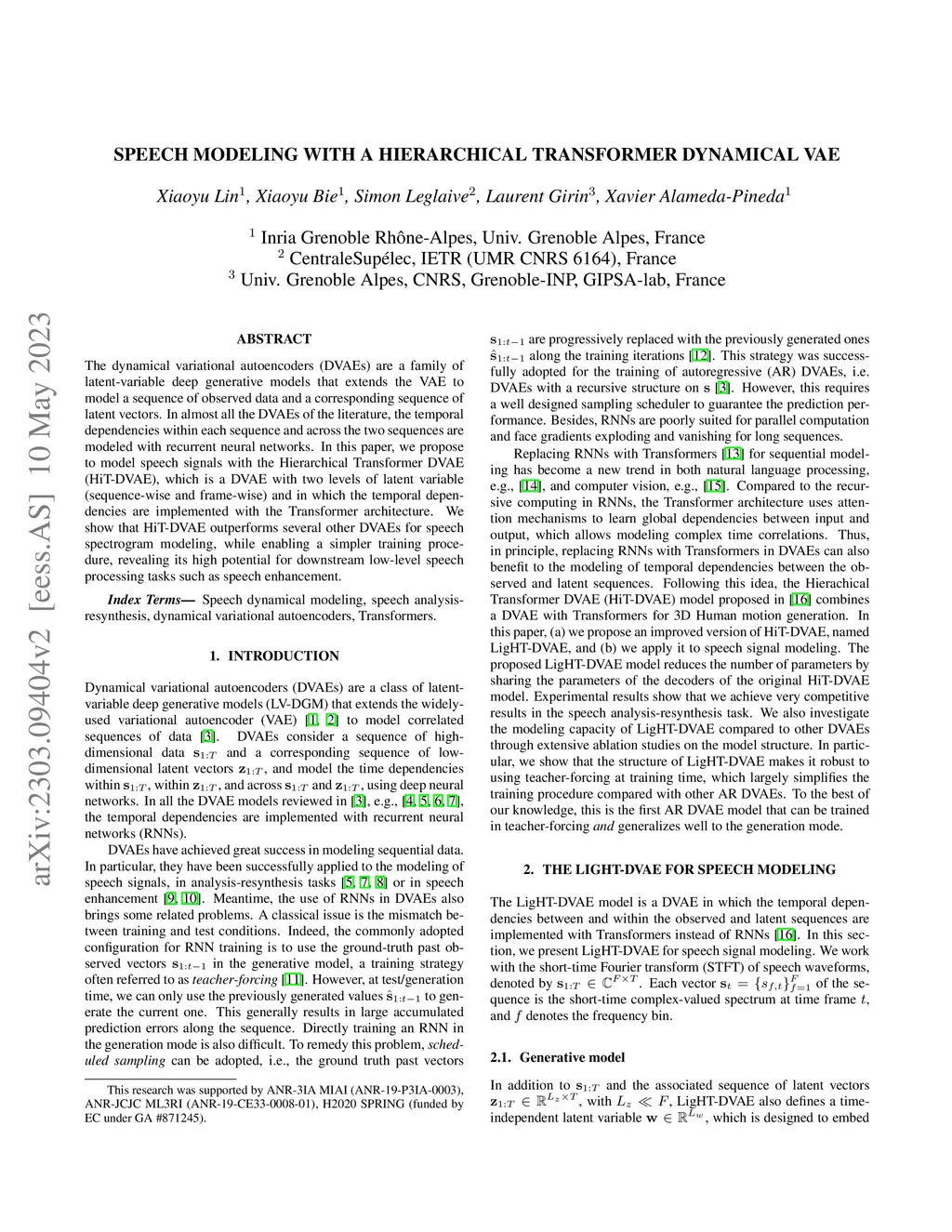 Speech Modeling with a Hierarchical Transformer Dynamical VAE