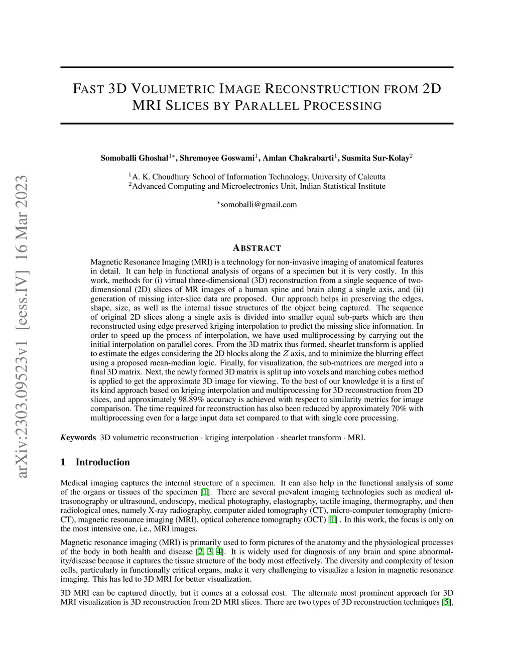 Fast 3D Volumetric Image Reconstruction from 2D MRI Slices by Parallel