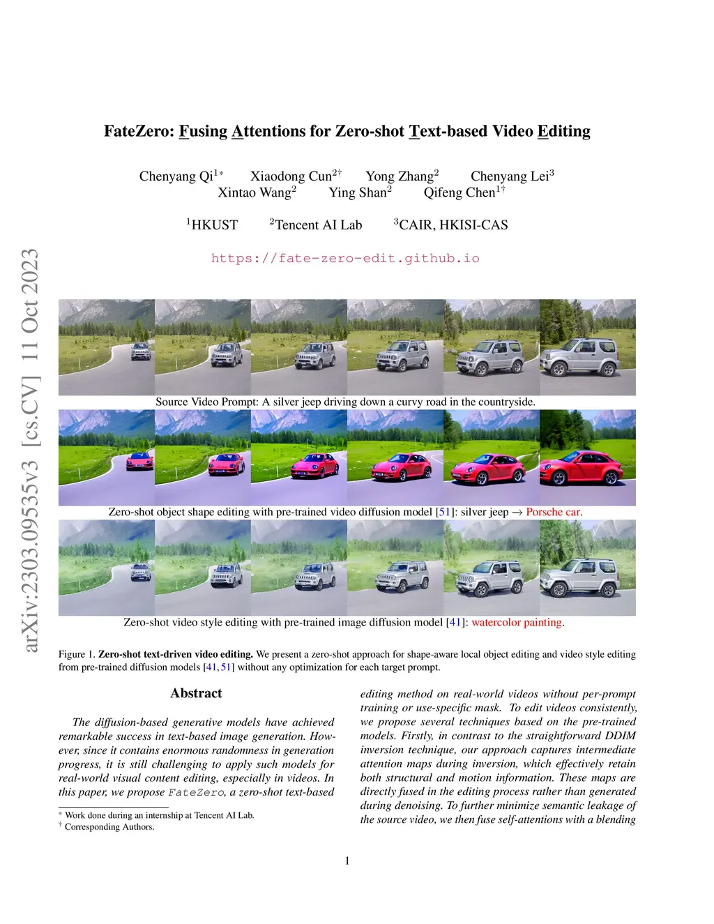 FateZero: Fusing Attentions for Zero-shot Text-based Video Editing