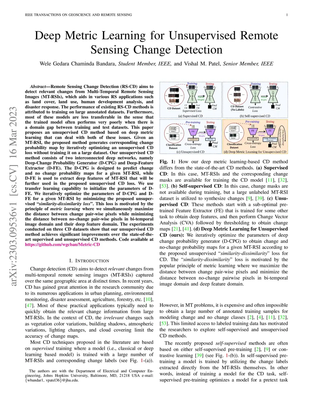 Deep Metric Learning for Unsupervised Remote Sensing Change Detection