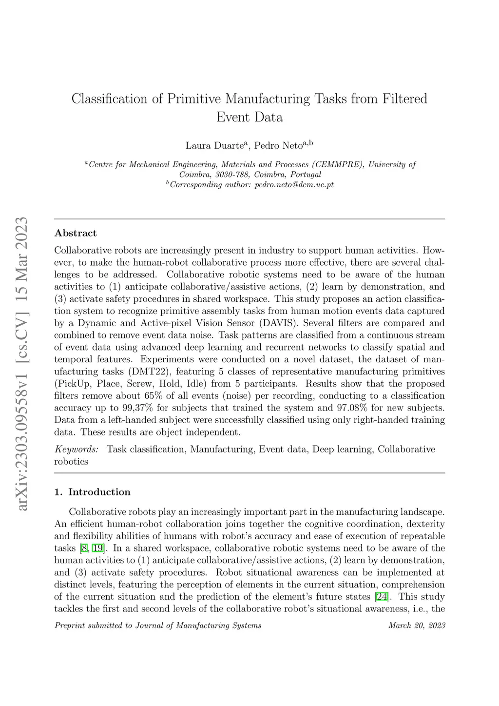 Classification of Primitive Manufacturing Tasks from Filtered Event Data