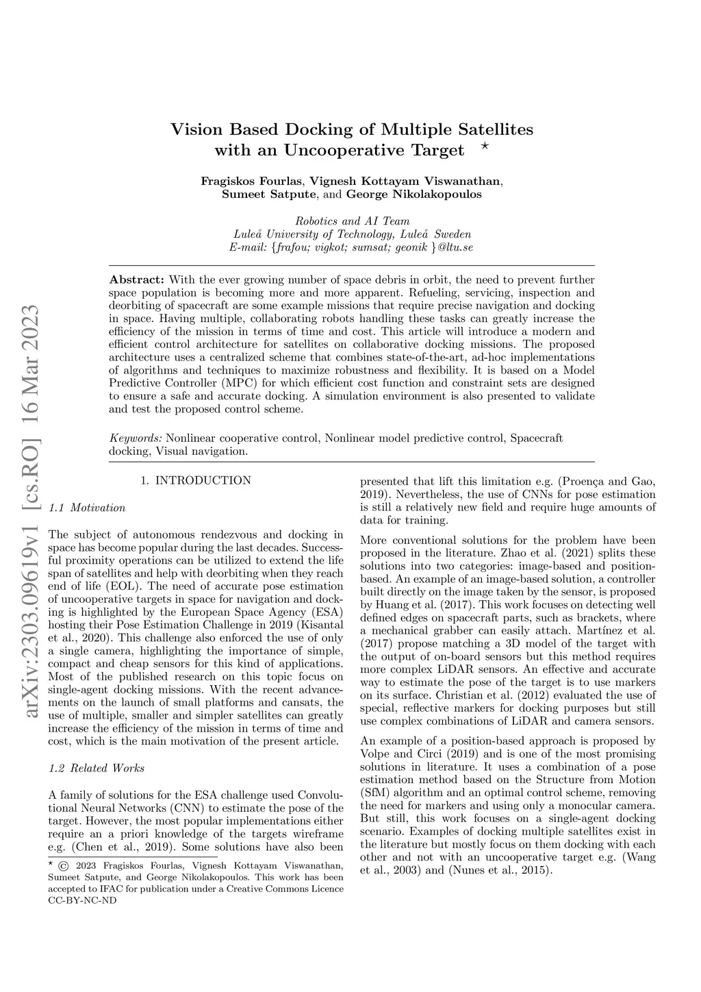 Vision Based Docking of Multiple Satellites with an Uncooperative Target