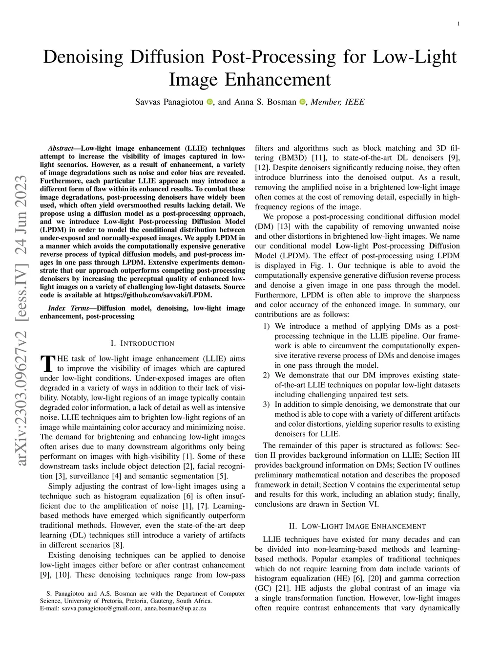 Denoising Diffusion Post-Processing for Low-Light Image Enhancement