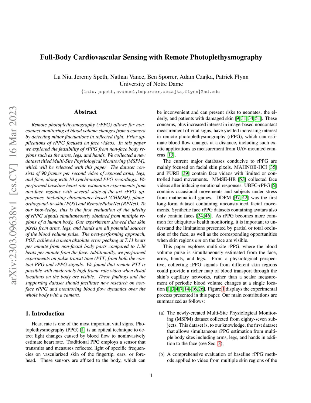 Full-Body Cardiovascular Sensing with Remote Photoplethysmography