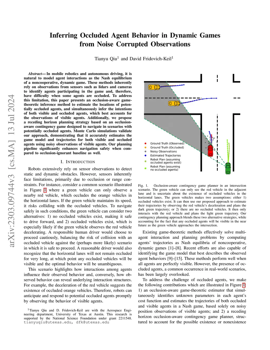 Inferring Occluded Agent Behavior in Dynamic Games from Noise Corrupted