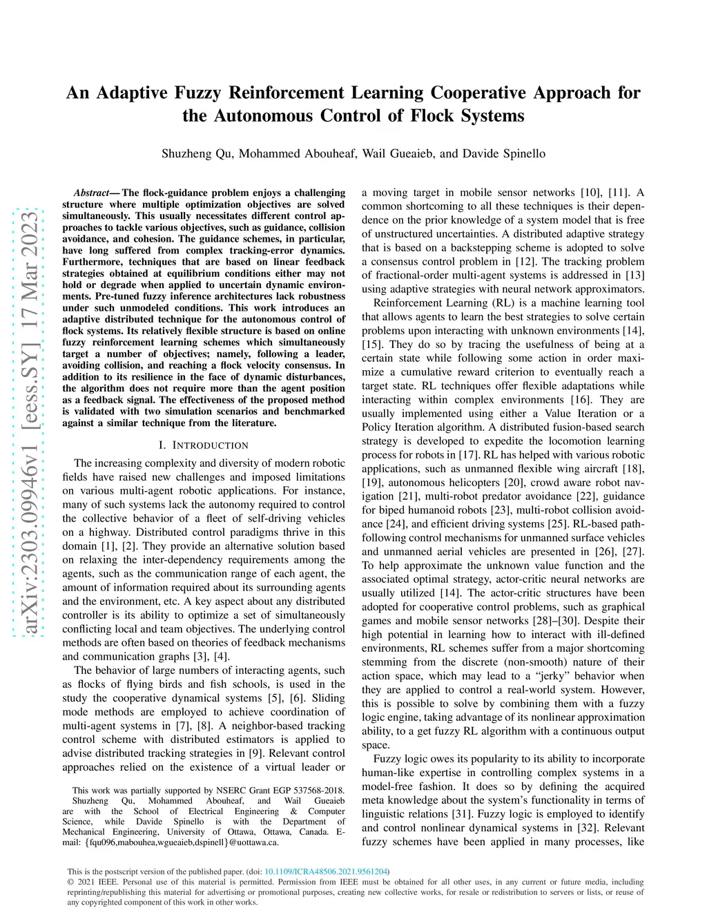 Autonomous Control of Flock Systems
