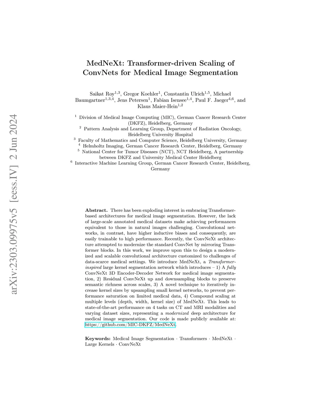 MedNeXt: Transformer-driven Scaling of ConvNets for Medical Image
