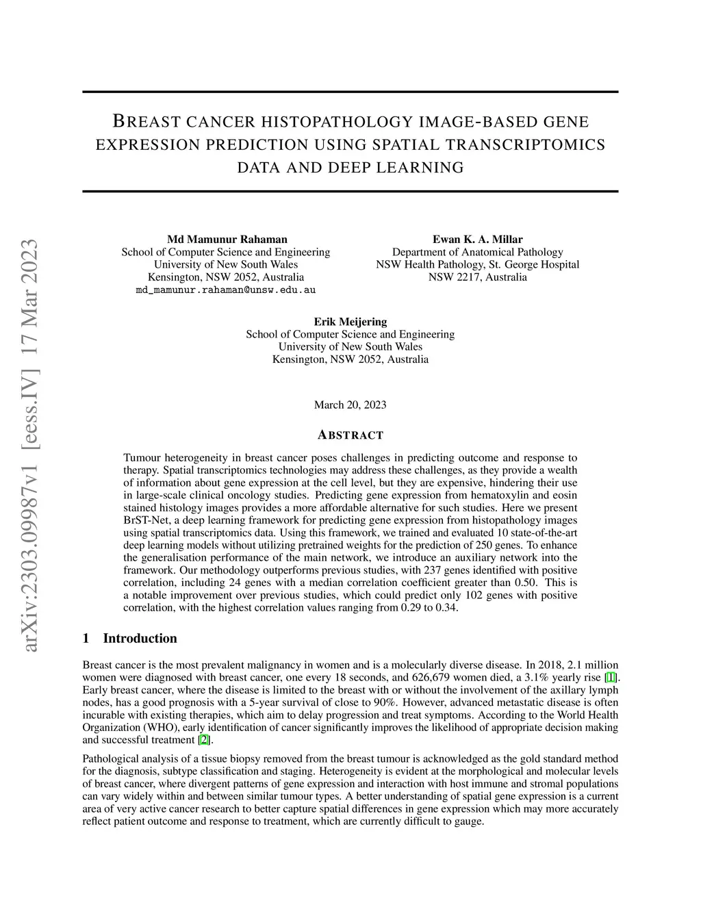 using Spatial Transcriptomics data and Deep Learning