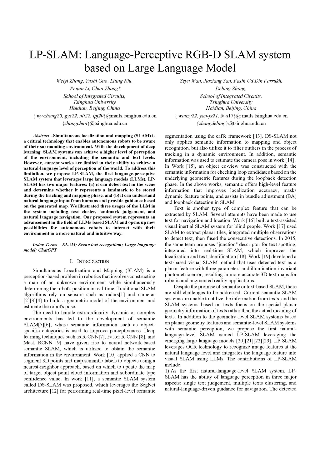 Simultaneous localization and mapping (SLAM) is a critical technology that enables autonomous robots to be aware of their surrounding environment. With the development of deep learning, SLAM systems can achieve a higher level of perception of the environment, including the semantic and text levels. However, current works are limited in their ability to achieve a natural-language level of perception of the world. To address this limitation, we propose LP-SLAM, the first language-perceptive SLAM system that leverages large language models (LLMs). LP-SLAM has two major features: (a) it can detect text in the scene and determine whether it represents a landmark to be stored during the tracking and mapping phase, and (b) it can understand natural language input from humans and provide guidance based on the generated map. We illustrated three usages of the LLM in the system including text cluster, landmark judgment, and natural language navigation. Our proposed system represents an advancement in the field of LLMs based SLAM and opens up new possibilities for autonomous robots to interact with their environment in a more natural and intuitive way.