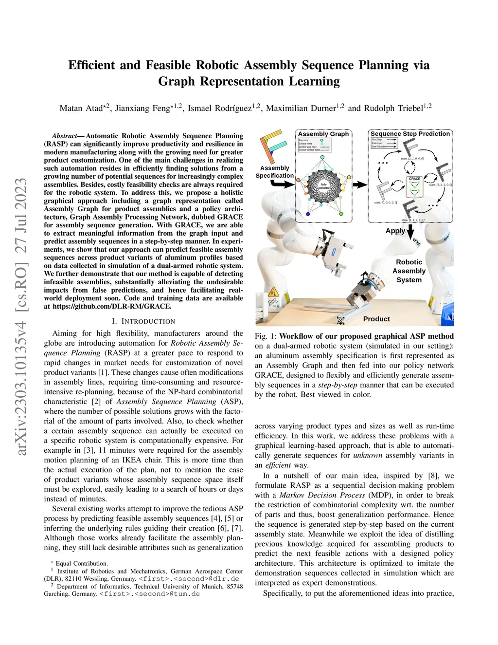 Efficient and Feasible Robotic Assembly Sequence Planning via Graph