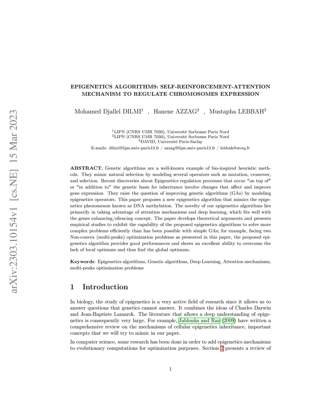 Genetic algorithms are a well-known example of bio-inspired heuristic methods. They mimic natural selection by modeling several operators such as mutation, crossover, and selection. Recent discoveries about Epigenetics regulation processes that occur "on top of" or "in addition to" the genetic basis for inheritance involve changes that affect and improve gene expression. They raise the question of improving genetic algorithms (GAs) by modeling epigenetics operators. This paper proposes a new epigenetics algorithm that mimics the epigenetics phenomenon known as DNA methylation. The novelty of our epigenetics algorithms lies primarily in taking advantage of attention mechanisms and deep learning, which fits well with the genes enhancing/silencing concept. The paper develops theoretical arguments and presents empirical studies to exhibit the capability of the proposed epigenetics algorithms to solve more complex problems efficiently than has been possible with simple GAs; for example, facing two Non-convex (multi-peaks) optimization problems as presented in this paper, the proposed epigenetics algorithm provides good performances and shows an excellent ability to overcome the lack of local optimum and thus find the global optimum.