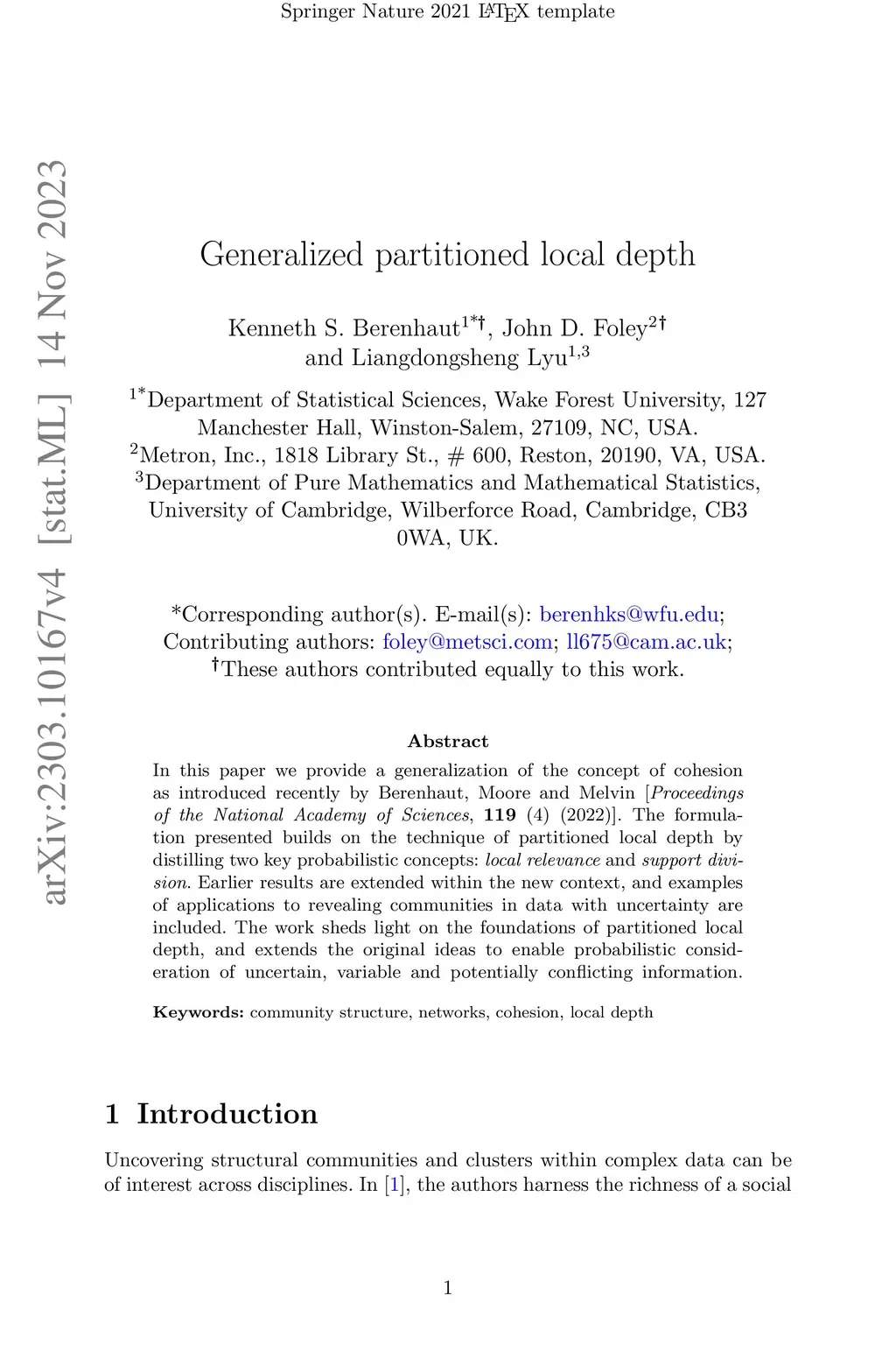In this paper we provide a generalization of the concept of cohesion as introduced recently by Berenhaut, Moore and Melvin [Proceedings of the National Academy of Sciences, 119 (4) (2022)]. The formulation presented builds on the technique of partitioned local depth by distilling two key probabilistic concepts: local relevance and support division. Earlier results are extended within the new context, and examples of applications to revealing communities in data with uncertainty are included. The work sheds light on the foundations of partitioned local depth, and extends the original ideas to enable probabilistic consideration of uncertain, variable and potentially conflicting information.