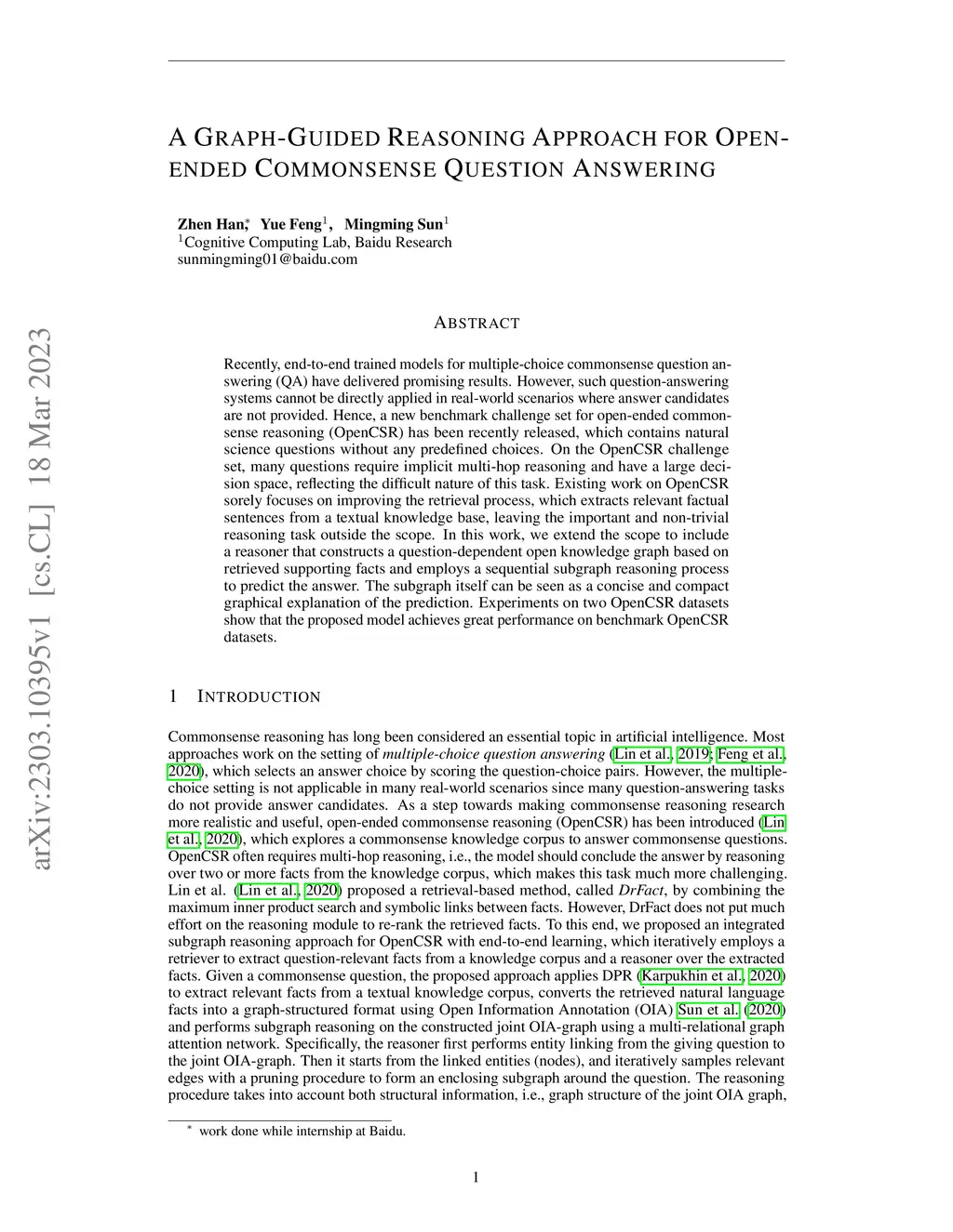 A Graph-Guided Reasoning Approach for Open-ended Commonsense Question