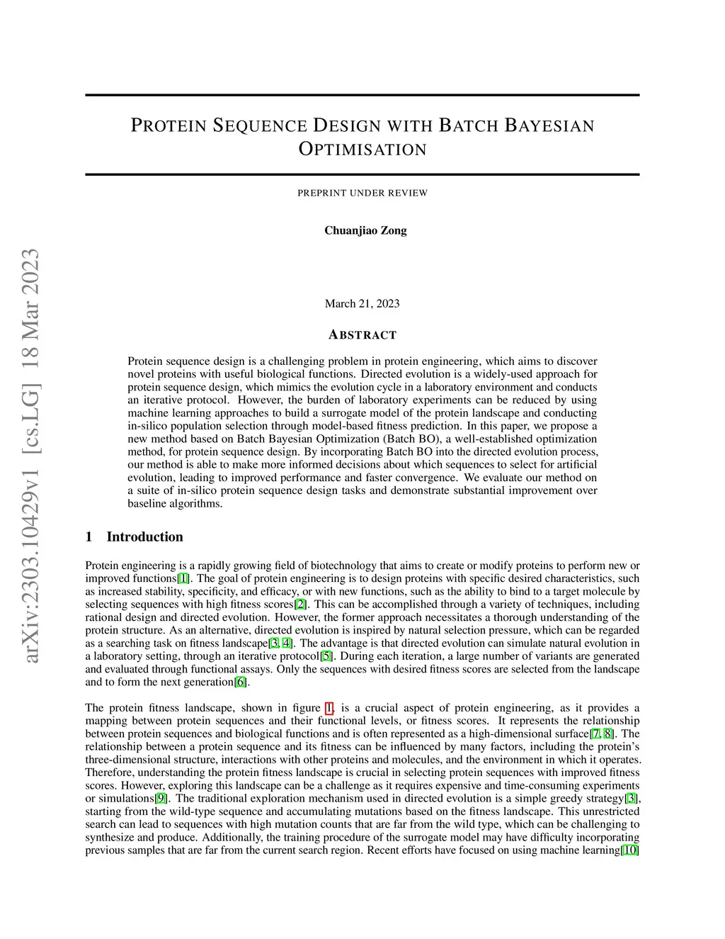 Protein Sequence Design with Batch Bayesian Optimisation