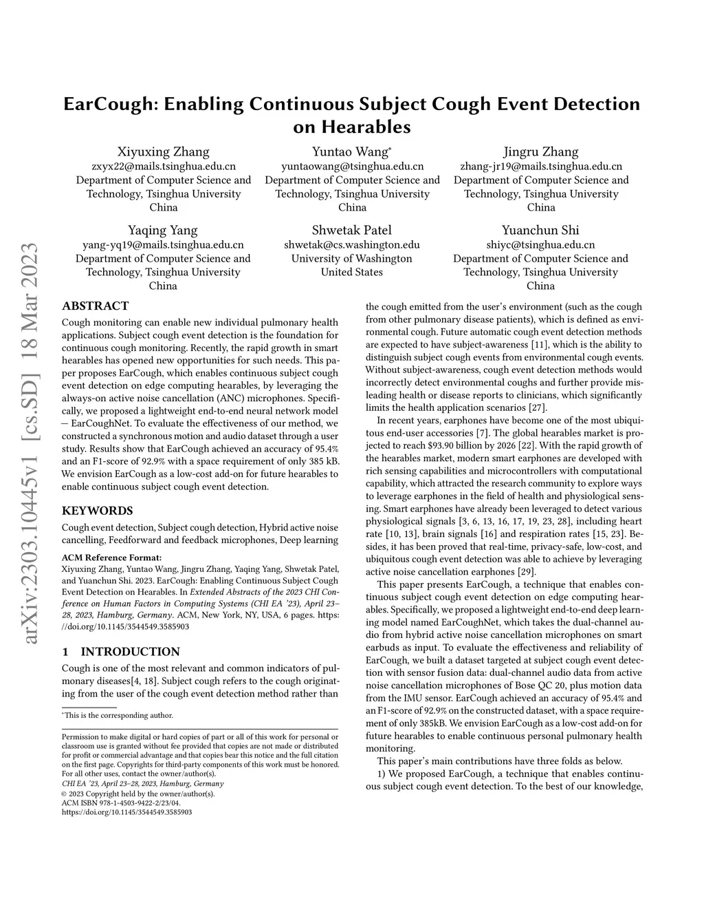 EarCough: Enabling Continuous Subject Cough Event Detection on Hearables