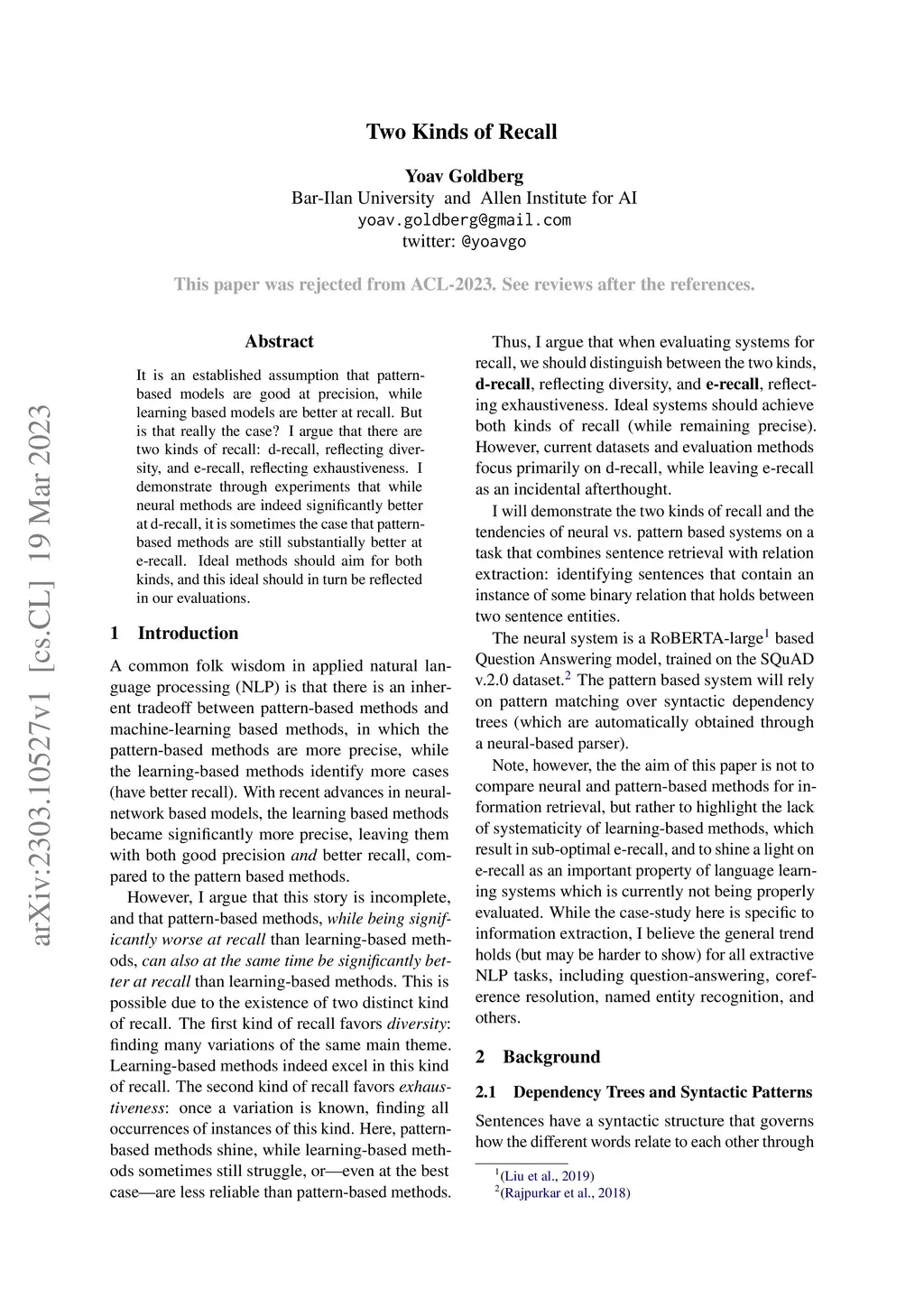 Two Kinds of Recall