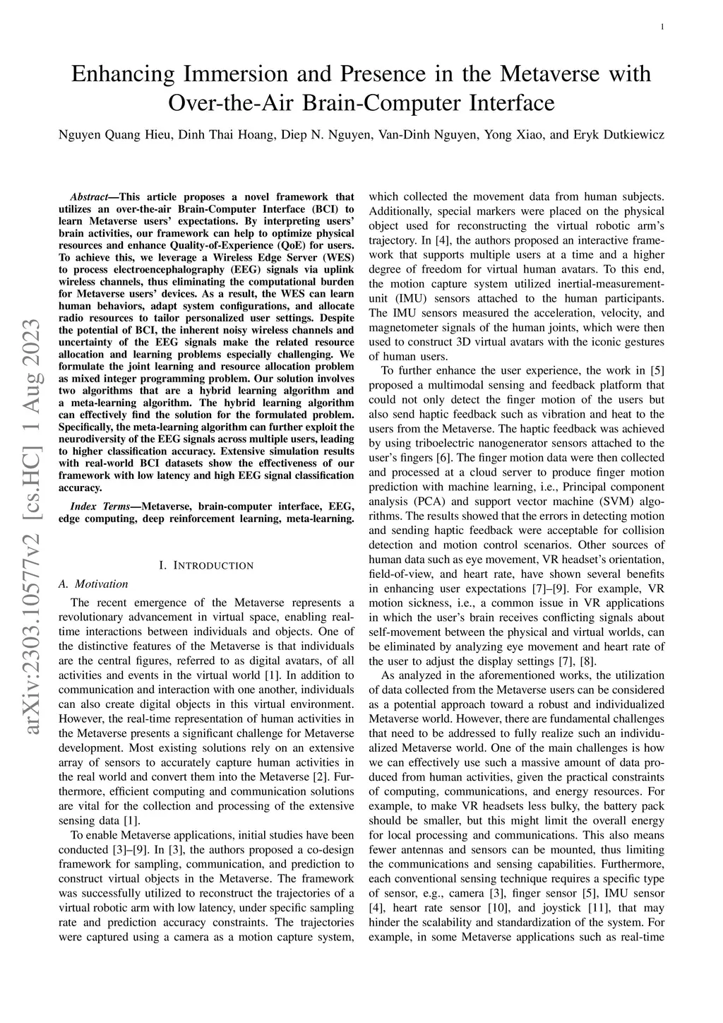 This article proposes a novel framework that utilizes an over-the-air Brain-Computer Interface (BCI) to learn Metaverse users' expectations. By interpreting users' brain activities, our framework can help to optimize physical resources and enhance Quality-of-Experience (QoE) for users. To achieve this, we leverage a Wireless Edge Server (WES) to process electroencephalography (EEG) signals via uplink wireless channels, thus eliminating the computational burden for Metaverse users' devices. As a result, the WES can learn human behaviors, adapt system configurations, and allocate radio resources to tailor personalized user settings. Despite the potential of BCI, the inherent noisy wireless channels and uncertainty of the EEG signals make the related resource allocation and learning problems especially challenging. We formulate the joint learning and resource allocation problem as mixed integer programming problem. Our solution involves two algorithms that are a hybrid learning algorithm and a meta-learning algorithm. The hybrid learning algorithm can effectively find the solution for the formulated problem. Specifically, the meta-learning algorithm can further exploit the neurodiversity of the EEG signals across multiple users, leading to higher classification accuracy. Extensive simulation results with real-world BCI datasets show the effectiveness of our framework with low latency and high EEG signal classification accuracy.