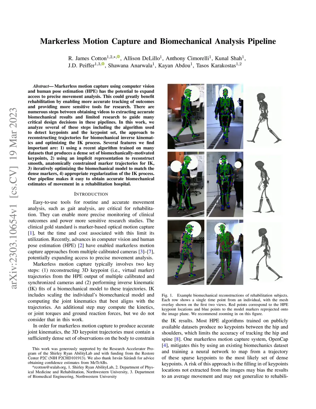 Markerless motion capture using computer vision and human pose estimation (HPE) has the potential to expand access to precise movement analysis. This could greatly benefit rehabilitation by enabling more accurate tracking of outcomes and providing more sensitive tools for research. There are numerous steps between obtaining videos to extracting accurate biomechanical results and limited research to guide many critical design decisions in these pipelines. In this work, we analyze several of these steps including the algorithm used to detect keypoints and the keypoint set, the approach to reconstructing trajectories for biomechanical inverse kinematics and optimizing the IK process. Several features we find important are: 1) using a recent algorithm trained on many datasets that produces a dense set of biomechanically-motivated keypoints, 2) using an implicit representation to reconstruct smooth, anatomically constrained marker trajectories for IK, 3) iteratively optimizing the biomechanical model to match the dense markers, 4) appropriate regularization of the IK process. Our pipeline makes it easy to obtain accurate biomechanical estimates of movement in a rehabilitation hospital.