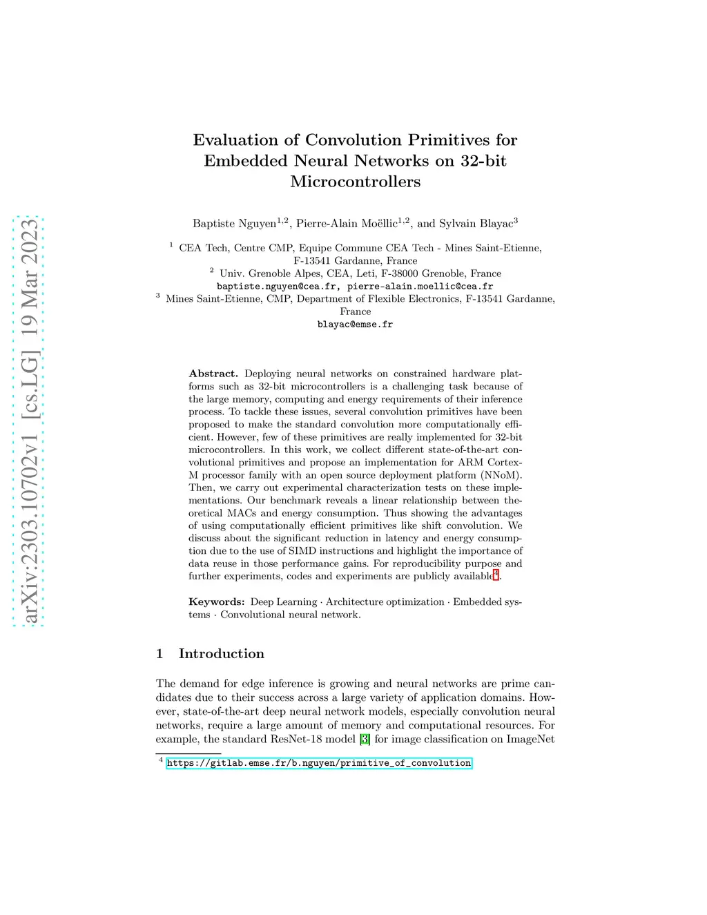 Evaluation of Convolution Primitives for Embedded Neural Networks on