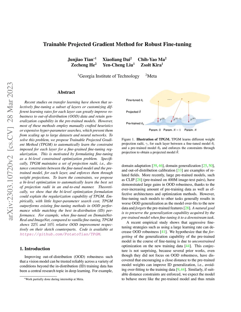 Trainable Projected Gradient Method for Robust Fine-tuning