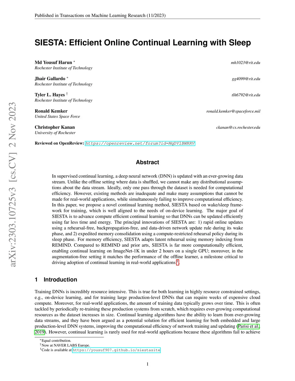SIESTA: Efficient Online Continual Learning with Sleep