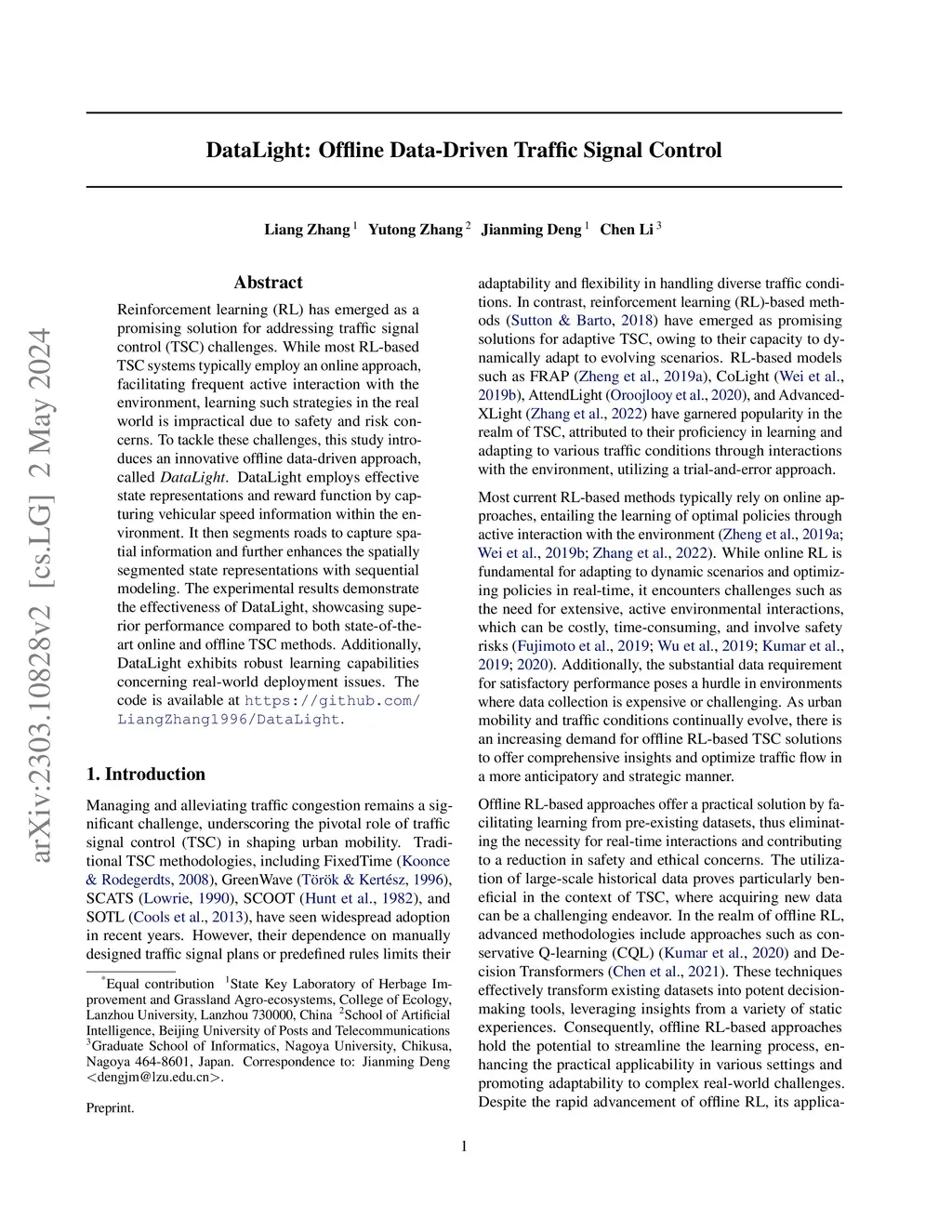 Reinforcement learning (RL) has emerged as a promising solution for addressing traffic signal control (TSC) challenges. While most RL-based TSC systems typically employ an online approach, facilitating frequent active interaction with the environment, learning such strategies in the real world is impractical due to safety and risk concerns. To tackle these challenges, this study introduces an innovative offline data-driven approach, called DataLight. DataLight employs effective state representations and reward function by capturing vehicular speed information within the environment. It then segments roads to capture spatial information and further enhances the spatially segmented state representations with sequential modeling. The experimental results demonstrate the effectiveness of DataLight, showcasing superior performance compared to both state-of-the-art online and offline TSC methods. Additionally, DataLight exhibits robust learning capabilities concerning real-world deployment issues. The code is available at https://github.com/LiangZhang1996/DataLight.