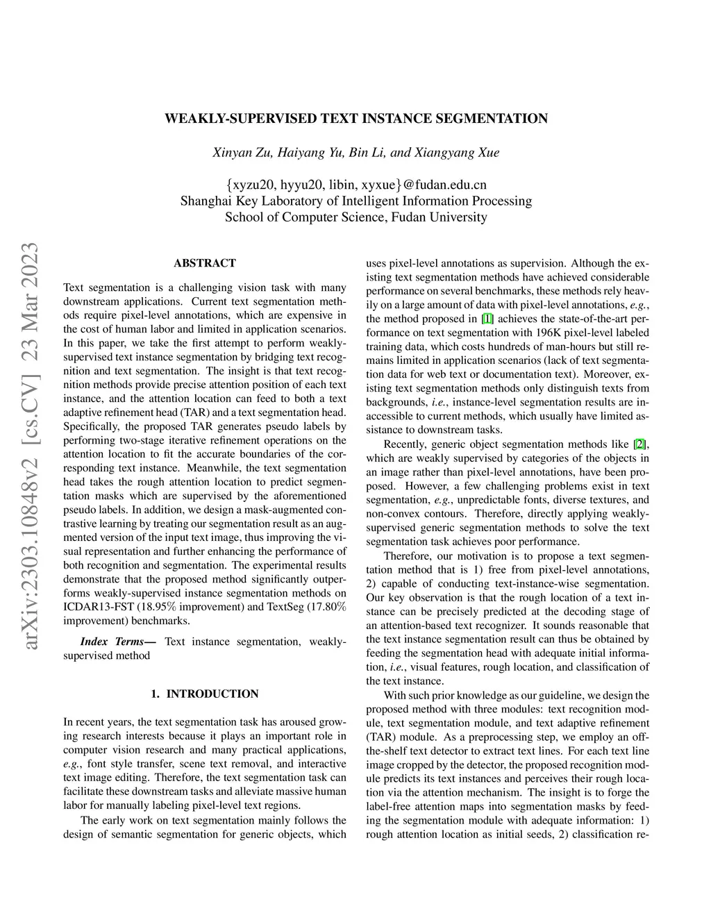 Weakly-Supervised Text Instance Segmentation