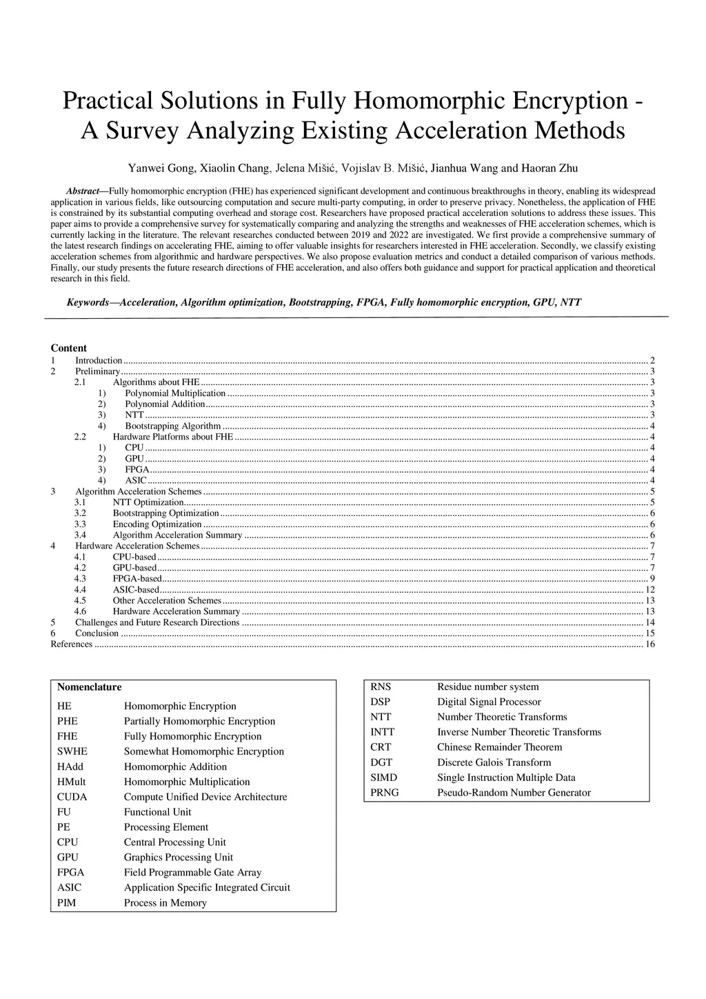 Fully homomorphic encryption (FHE) has experienced significant development and continuous breakthroughs in theory, enabling its widespread application in various fields, like outsourcing computation and secure multi-party computing, in order to preserve privacy. Nonetheless, the application of FHE is constrained by its substantial computing overhead and storage cost. Researchers have proposed practical acceleration solutions to address these issues. This paper aims to provide a comprehensive survey for systematically comparing and analyzing the strengths and weaknesses of FHE acceleration schemes, which is currently lacking in the literature. The relevant researches conducted between 2019 and 2022 are investigated. We first provide a comprehensive summary of the latest research findings on accelerating FHE, aiming to offer valuable insights for researchers interested in FHE acceleration. Secondly, we classify existing acceleration schemes from algorithmic and hardware perspectives. We also propose evaluation metrics and conduct a detailed comparison of various methods. Finally, our study presents the future research directions of FHE acceleration, and also offers both guidance and support for practical application and theoretical research in this field.