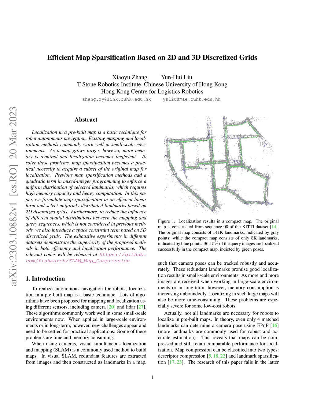 Efficient Map Sparsification Based on 2D and 3D Discretized Grids