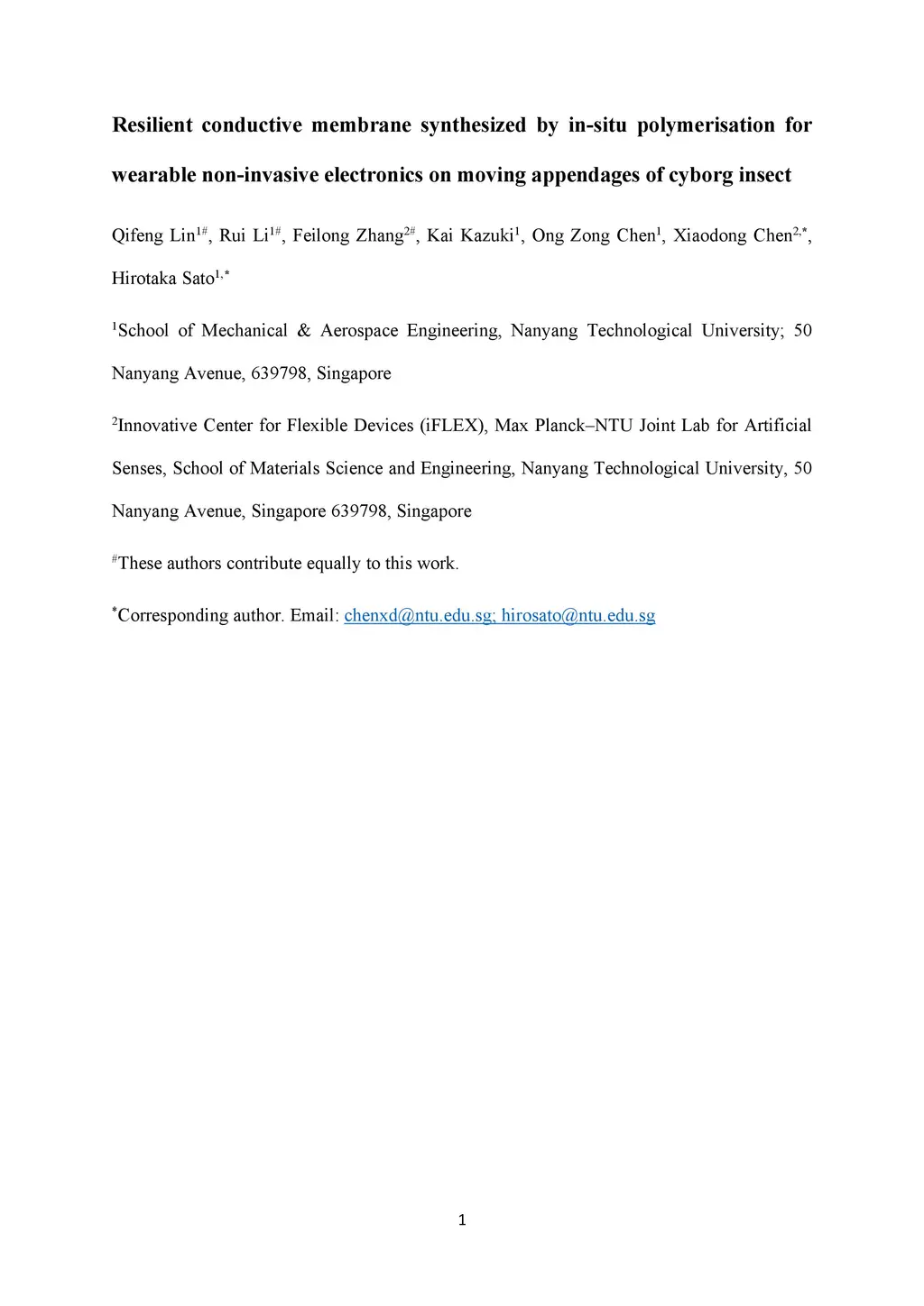 wearable non-invasive electronics on moving appendages of cyborg insect