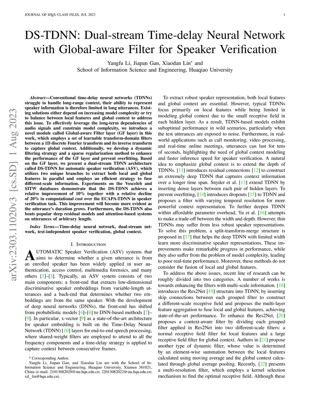 DS-TDNN: Dual-stream Time-delay Neural Network with Global-aware Filter