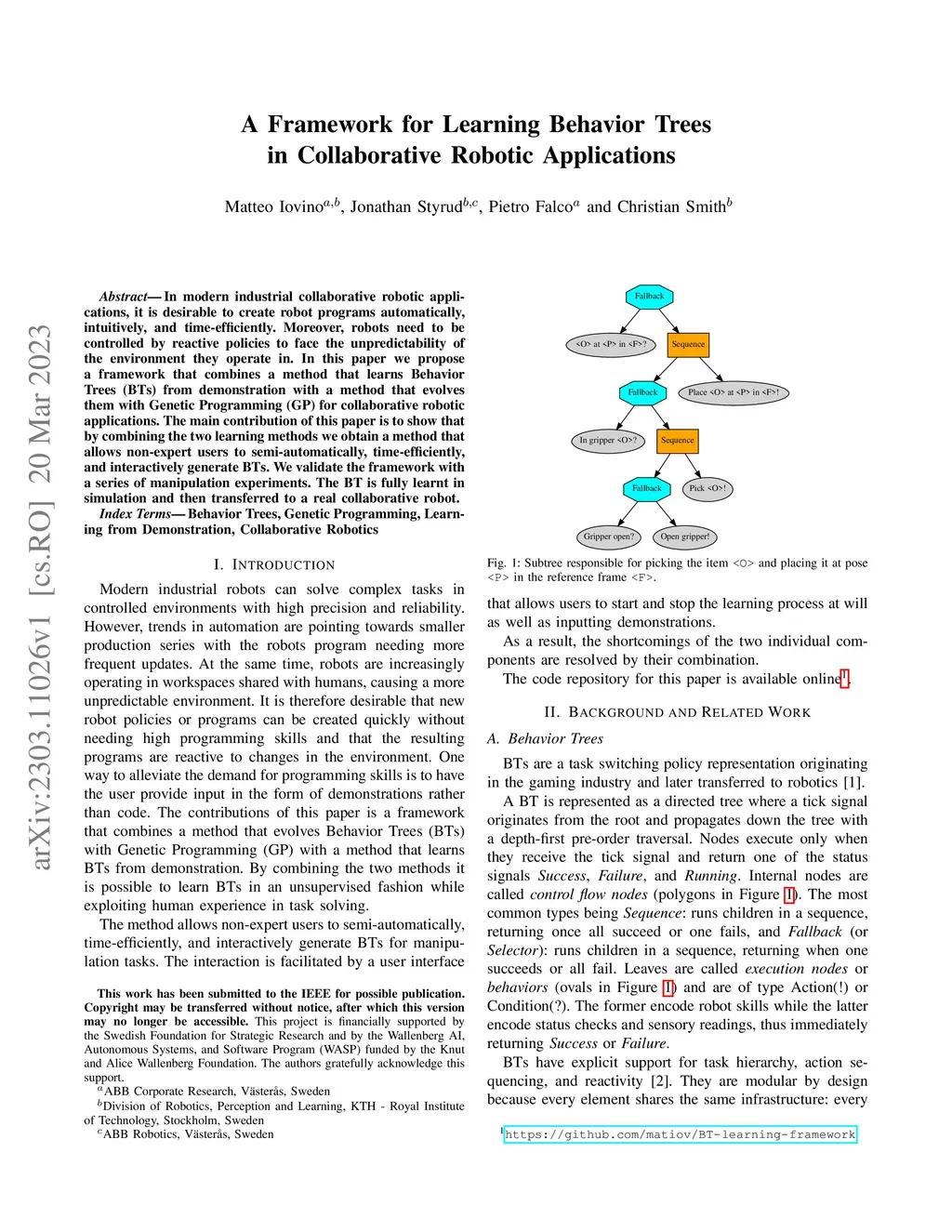 A Framework for Learning Behavior Trees in Collaborative Robotic