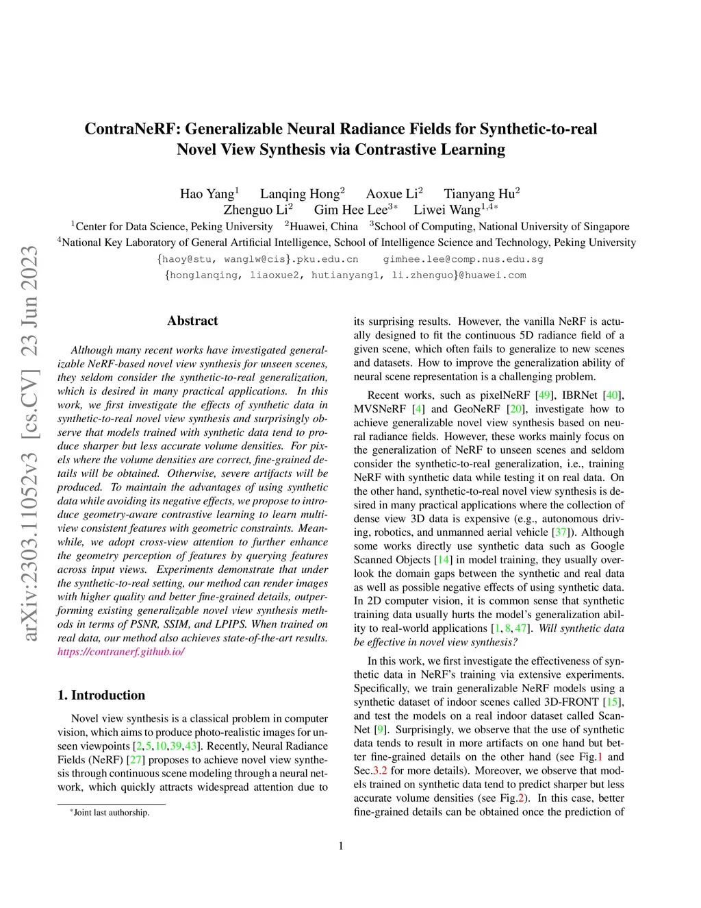 ContraNeRF: Generalizable Neural Radiance Fields for Synthetic-to-real