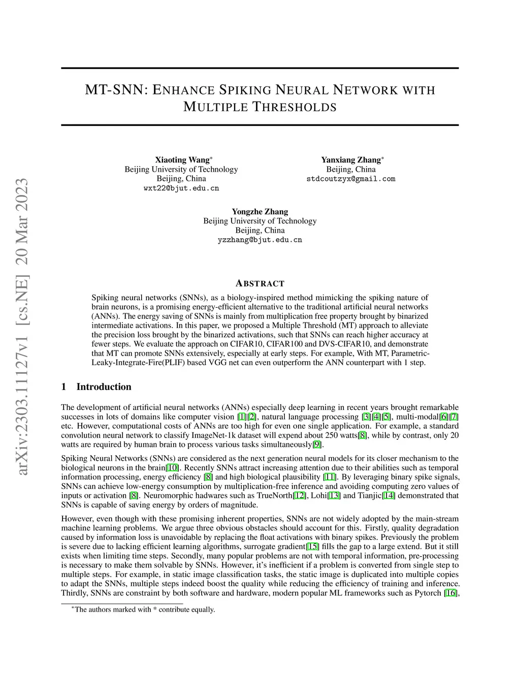 MT-SNN: Enhance Spiking Neural Network with Multiple Thresholds