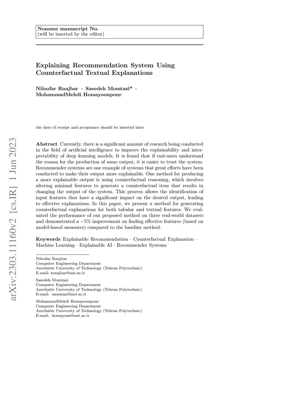 Explaining Recommendation System Using Counterfactual Textual