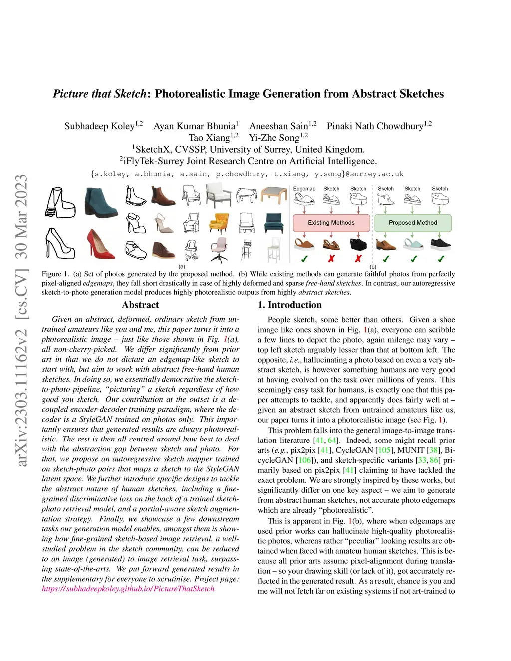 Given an abstract, deformed, ordinary sketch from untrained amateurs like you and me, this paper turns it into a photorealistic image - just like those shown in Fig. 1(a), all non-cherry-picked. We differ significantly from prior art in that we do not dictate an edgemap-like sketch to start with, but aim to work with abstract free-hand human sketches. In doing so, we essentially democratise the sketch-to-photo pipeline, "picturing" a sketch regardless of how good you sketch. Our contribution at the outset is a decoupled encoder-decoder training paradigm, where the decoder is a StyleGAN trained on photos only. This importantly ensures that generated results are always photorealistic. The rest is then all centred around how best to deal with the abstraction gap between sketch and photo. For that, we propose an autoregressive sketch mapper trained on sketch-photo pairs that maps a sketch to the StyleGAN latent space. We further introduce specific designs to tackle the abstract nature of human sketches, including a fine-grained discriminative loss on the back of a trained sketch-photo retrieval model, and a partial-aware sketch augmentation strategy. Finally, we showcase a few downstream tasks our generation model enables, amongst them is showing how fine-grained sketch-based image retrieval, a well-studied problem in the sketch community, can be reduced to an image (generated) to image retrieval task, surpassing state-of-the-arts. We put forward generated results in the supplementary for everyone to scrutinise.