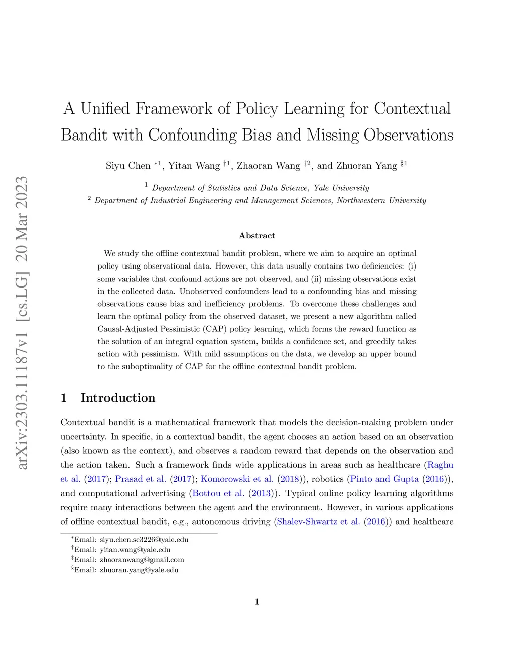 A Unified Framework of Policy Learning for Contextual Bandit with