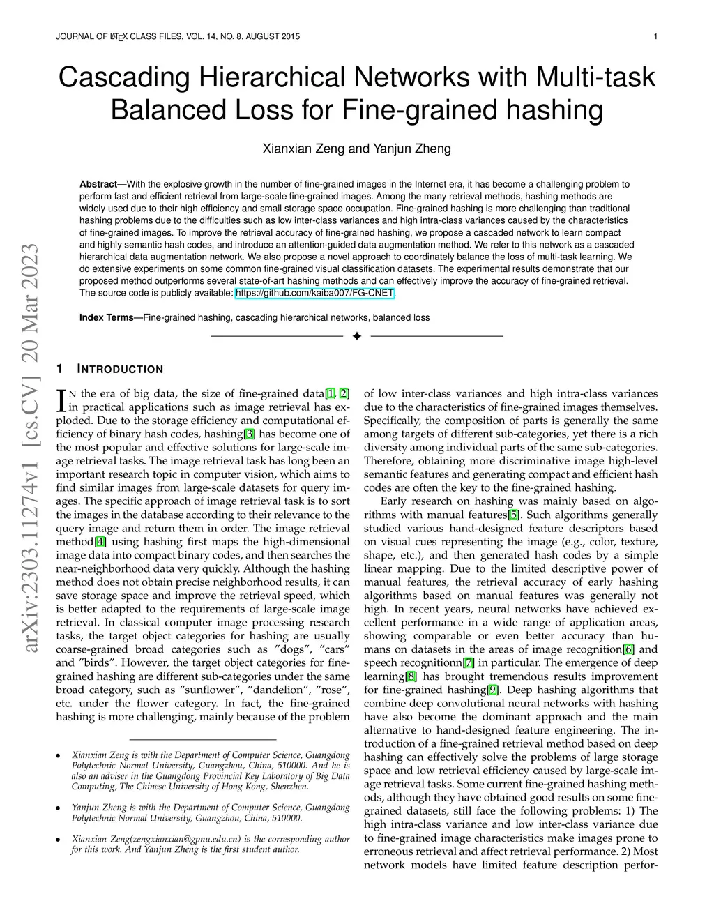 With the explosive growth in the number of fine-grained images in the Internet era, it has become a challenging problem to perform fast and efficient retrieval from large-scale fine-grained images. Among the many retrieval methods, hashing methods are widely used due to their high efficiency and small storage space occupation. Fine-grained hashing is more challenging than traditional hashing problems due to the difficulties such as low inter-class variances and high intra-class variances caused by the characteristics of fine-grained images. To improve the retrieval accuracy of fine-grained hashing, we propose a cascaded network to learn compact and highly semantic hash codes, and introduce an attention-guided data augmentation method. We refer to this network as a cascaded hierarchical data augmentation network. We also propose a novel approach to coordinately balance the loss of multi-task learning. We do extensive experiments on some common fine-grained visual classification datasets. The experimental results demonstrate that our proposed method outperforms several state-of-art hashing methods and can effectively improve the accuracy of fine-grained retrieval. The source code is publicly available: https://github.com/kaiba007/FG-CNET.