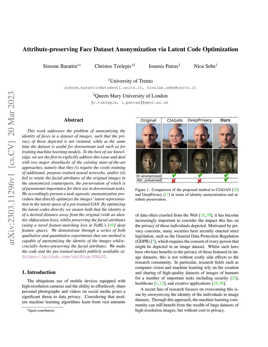 Attribute-preserving Face Dataset Anonymization via Latent Code
