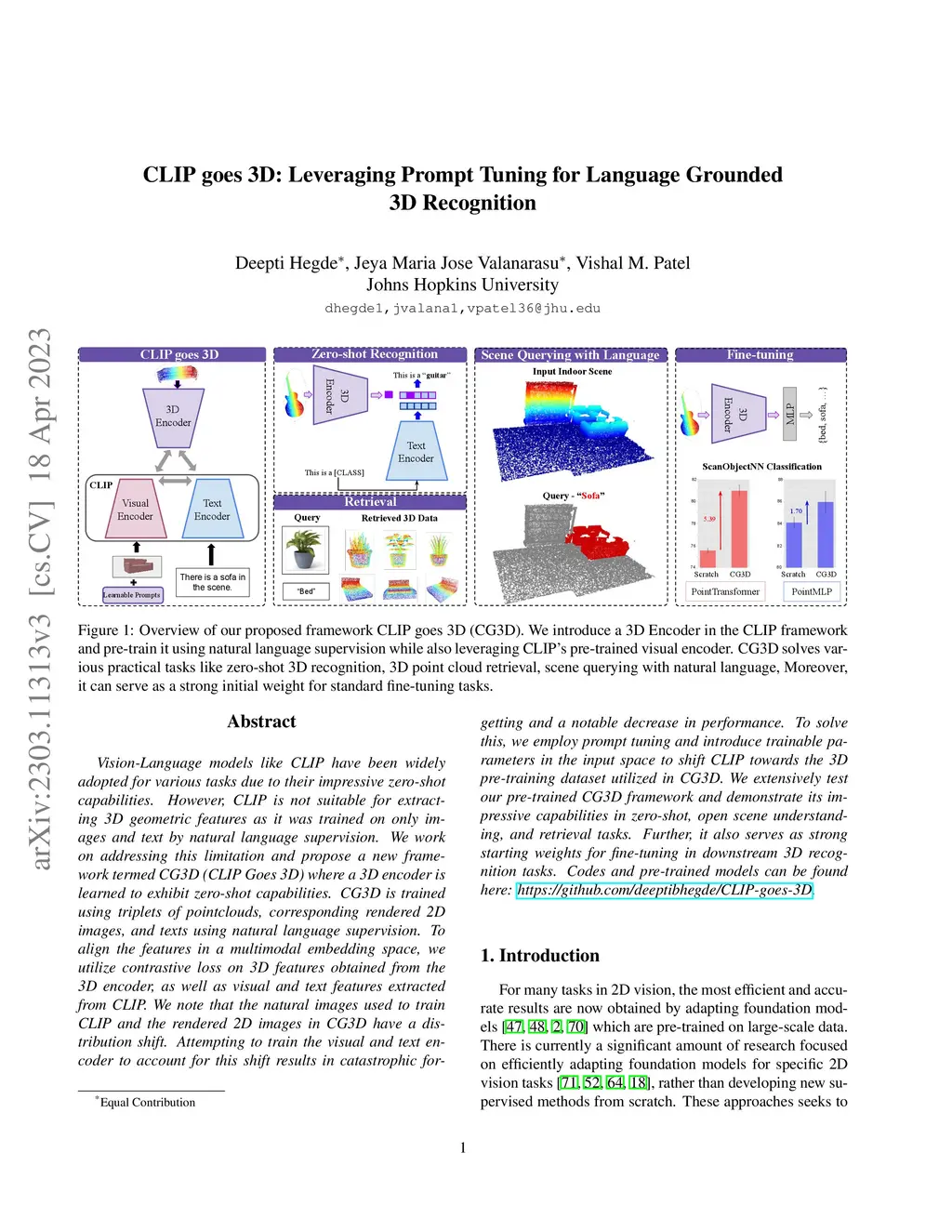 CLIP goes 3D: Leveraging Prompt Tuning for Language Grounded 3D