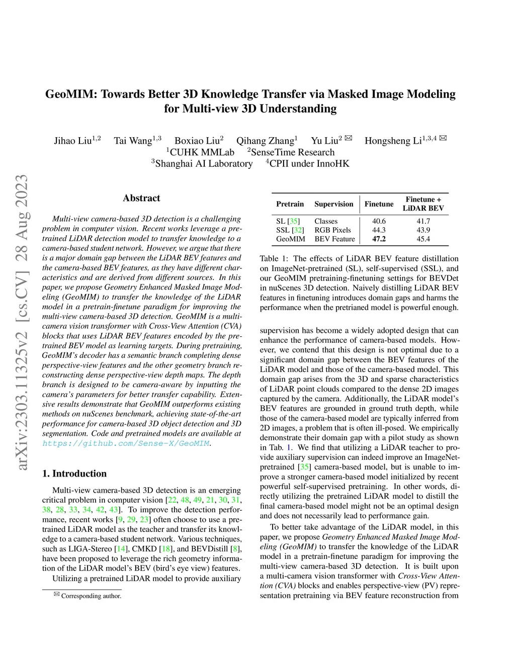 GeoMIM: Towards Better 3D Knowledge Transfer via Masked Image Modeling