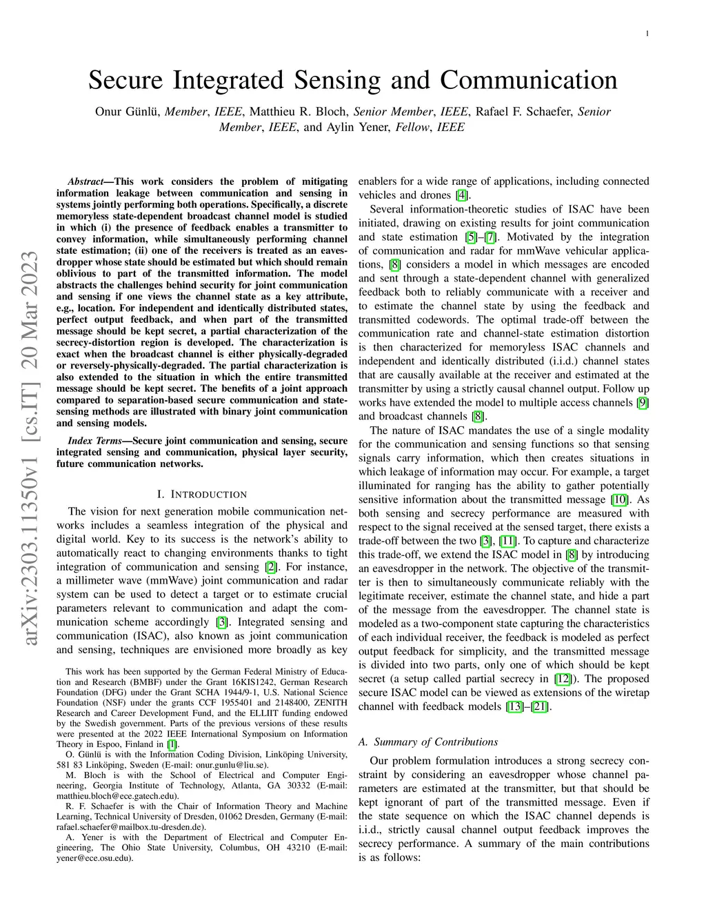 This work considers the problem of mitigating information leakage between communication and sensing in systems jointly performing both operations. Specifically, a discrete memoryless state-dependent broadcast channel model is studied in which (i) the presence of feedback enables a transmitter to convey information, while simultaneously performing channel state estimation; (ii) one of the receivers is treated as an eavesdropper whose state should be estimated but which should remain oblivious to part of the transmitted information. The model abstracts the challenges behind security for joint communication and sensing if one views the channel state as a key attribute, e.g., location. For independent and identically distributed states, perfect output feedback, and when part of the transmitted message should be kept secret, a partial characterization of the secrecy-distortion region is developed. The characterization is exact when the broadcast channel is either physically-degraded or reversely-physically-degraded. The partial characterization is also extended to the situation in which the entire transmitted message should be kept secret. The benefits of a joint approach compared to separation-based secure communication and state-sensing methods are illustrated with binary joint communication and sensing models.